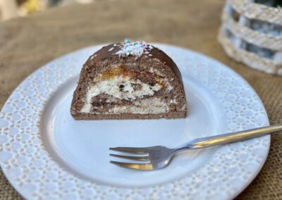 A pokud máte naopak chuť na něco opravdu velkého, rádi vám vyrobíme i maxi varianty některých zákusků – například věneček, větrník, indiána či špičku.